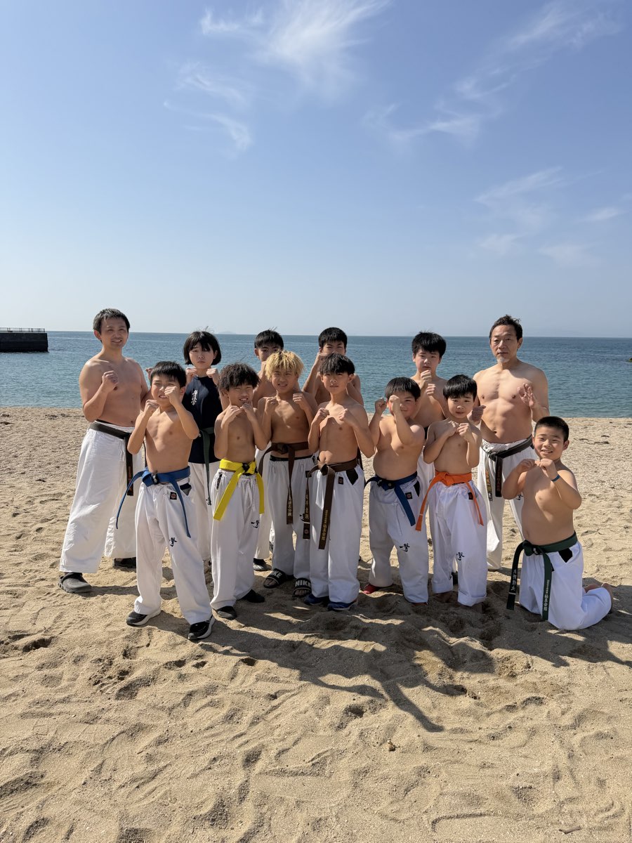 最後は海に向かって気合いの正拳突き